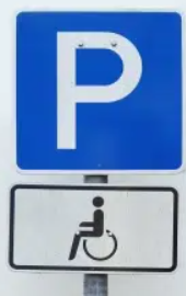 Behindertenparkplatz: Kennzeichnung durch Verkehrszeichen 314 „P“ 1 und das Zusatzzeichen 1044-10 .