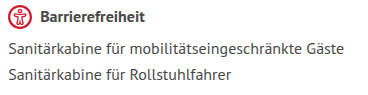 In den Details findet sich der Hinweis „Barrierefreie Einrichtungen“.
