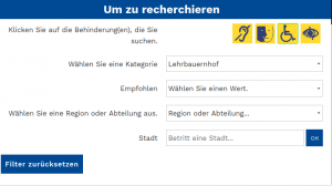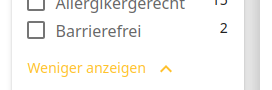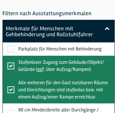 In den weiteren Filteroptionen lassen sich noch „Barrierefreiheit“ und „Barrierefreie Rezeption“ aktivieren.