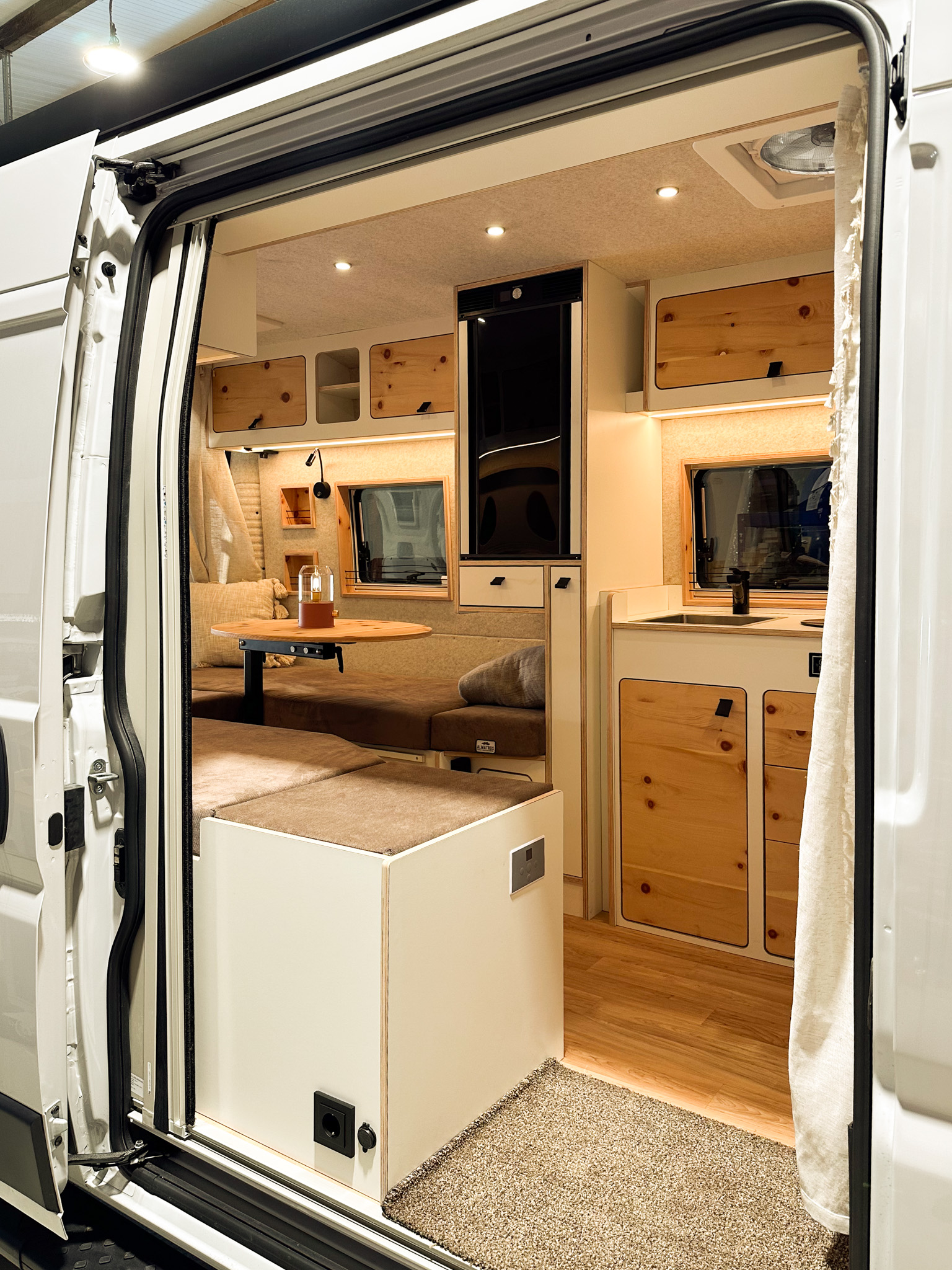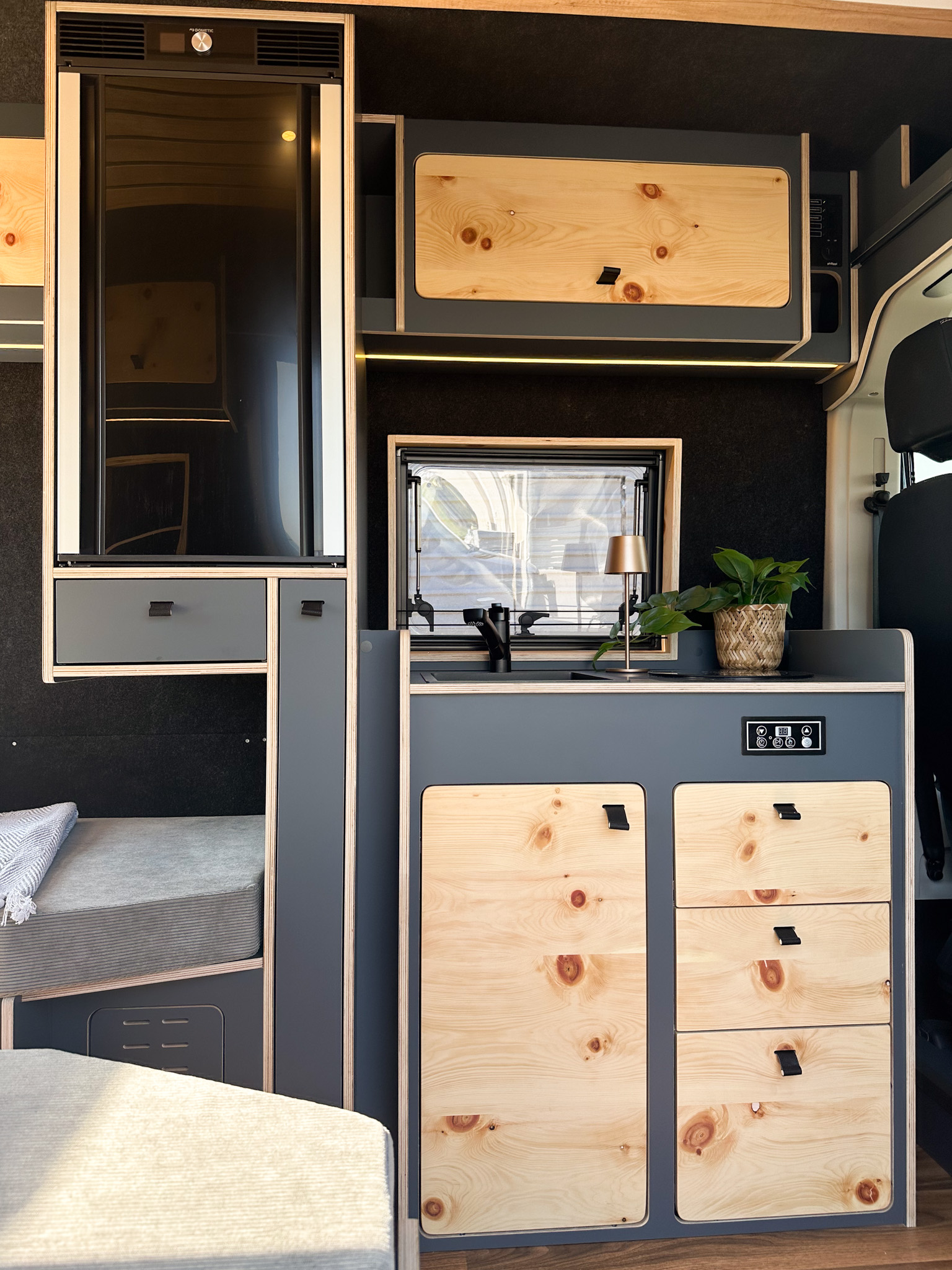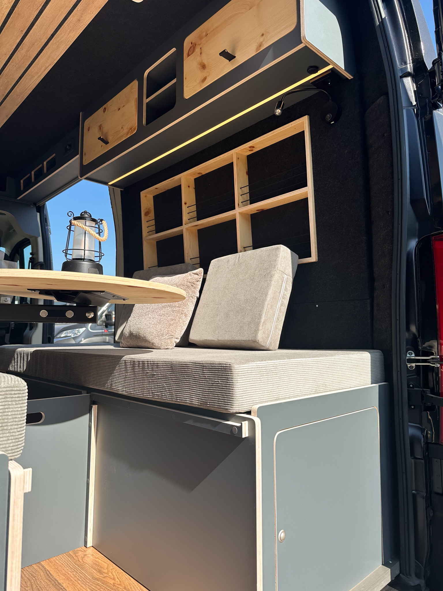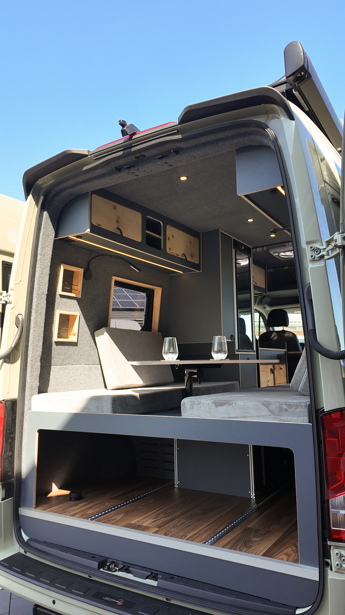 Auf der Ebene einer gewissen Mobilitätseinschränkung in Verbindung mit einer bestimmten Camper Situation lassen sich Konzepte entwickeln, die nahe am Standard und damit erschwinglich bleiben. Die hier am Beispiel der Ausbauten von VanWeekend