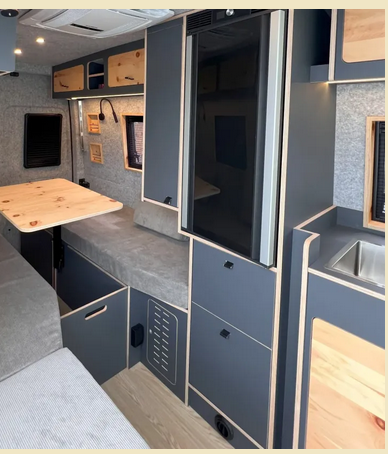 Soviel zu dem Versuch, mittels KI die BioTioo T. T. Toilette im Van zu integrieren. Ich hoffe das Prinzip ist nachvollziehbar: wird sie nicht benötigt ist sie unsichtbar im Bettkasten unter gebracht. Bei Notdurft wird sie über einen Schwerlastauszug in den Raum vor dem Küchenmodul herausgezogen.