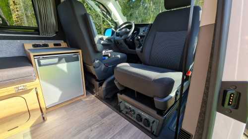 Im Konzept des Show Car – Barrierefreier Camper Van wird der Einstieg über die seitliche Schiebetür geplant. Um den körperlichen Einschränkungen entsprechend das Umsetzen auf den Beifahrer Sitz zu erleichtern, kann dieser nicht nur um 180° gedreht werden. Er wird sich soweit in den Wohnraum verschieben lassen, das für das Umsetzen die komplette Fläche vor der Schiebetür verwendet werden kann. Nach dem Umsetzen wird der Sitz wieder in Fahrtrichtung gedreht und in dieser Ausrichtung wieder an seine ursprüngliche Position geschoben.